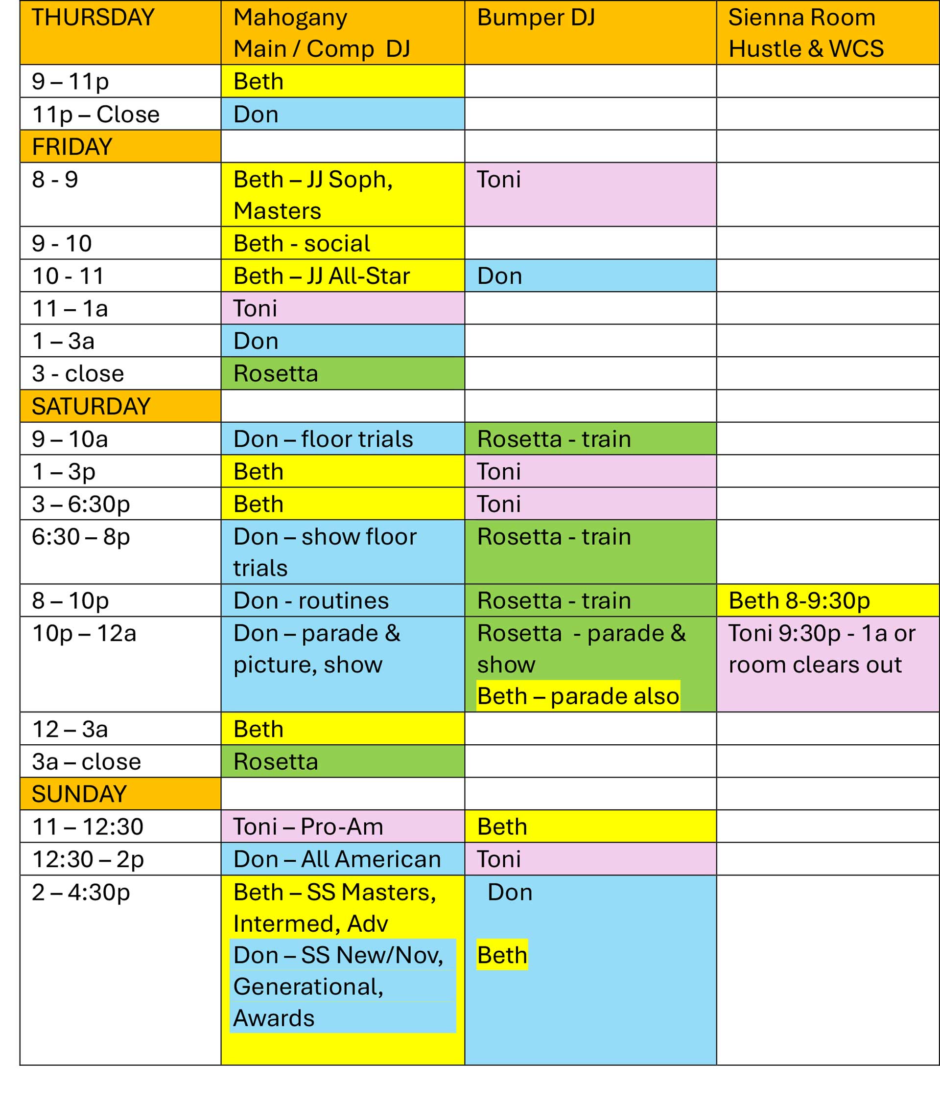 Andy Pakan is the event Accountant, please find him on Friday or Saturday in the main office by the ballroom in order to get paid on Sunday. You’ll need to complete a W-9 (and for those of you who have been at SCC before you will more than likely need to complete a new one).
